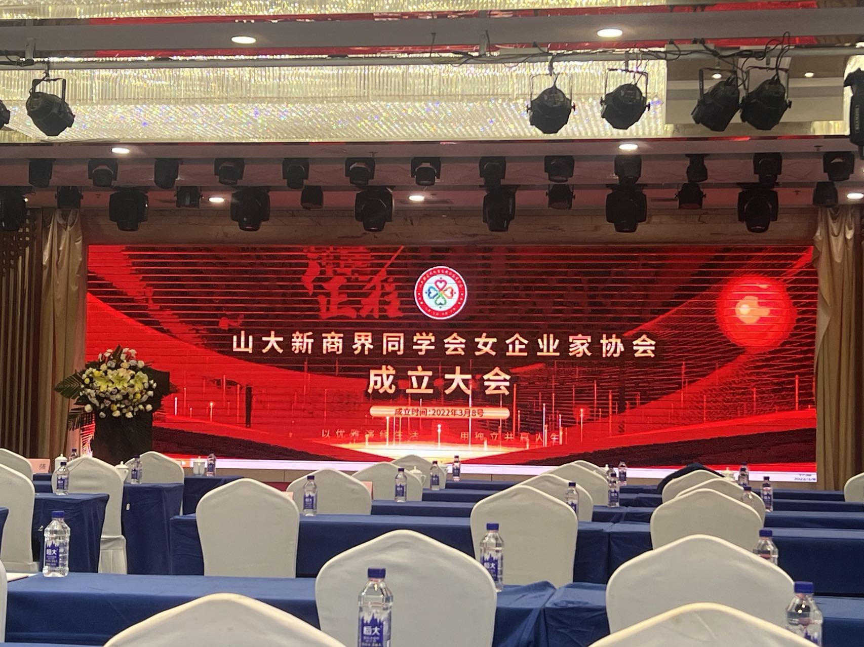 2022年三八女神节,山大新商界女企业家协会成立,为其提供logo、应用、会场设计。