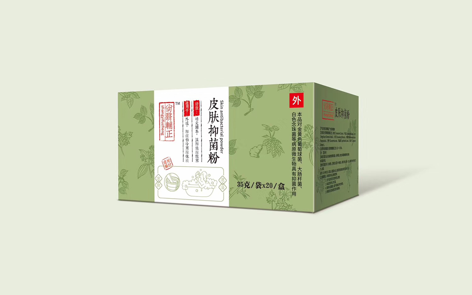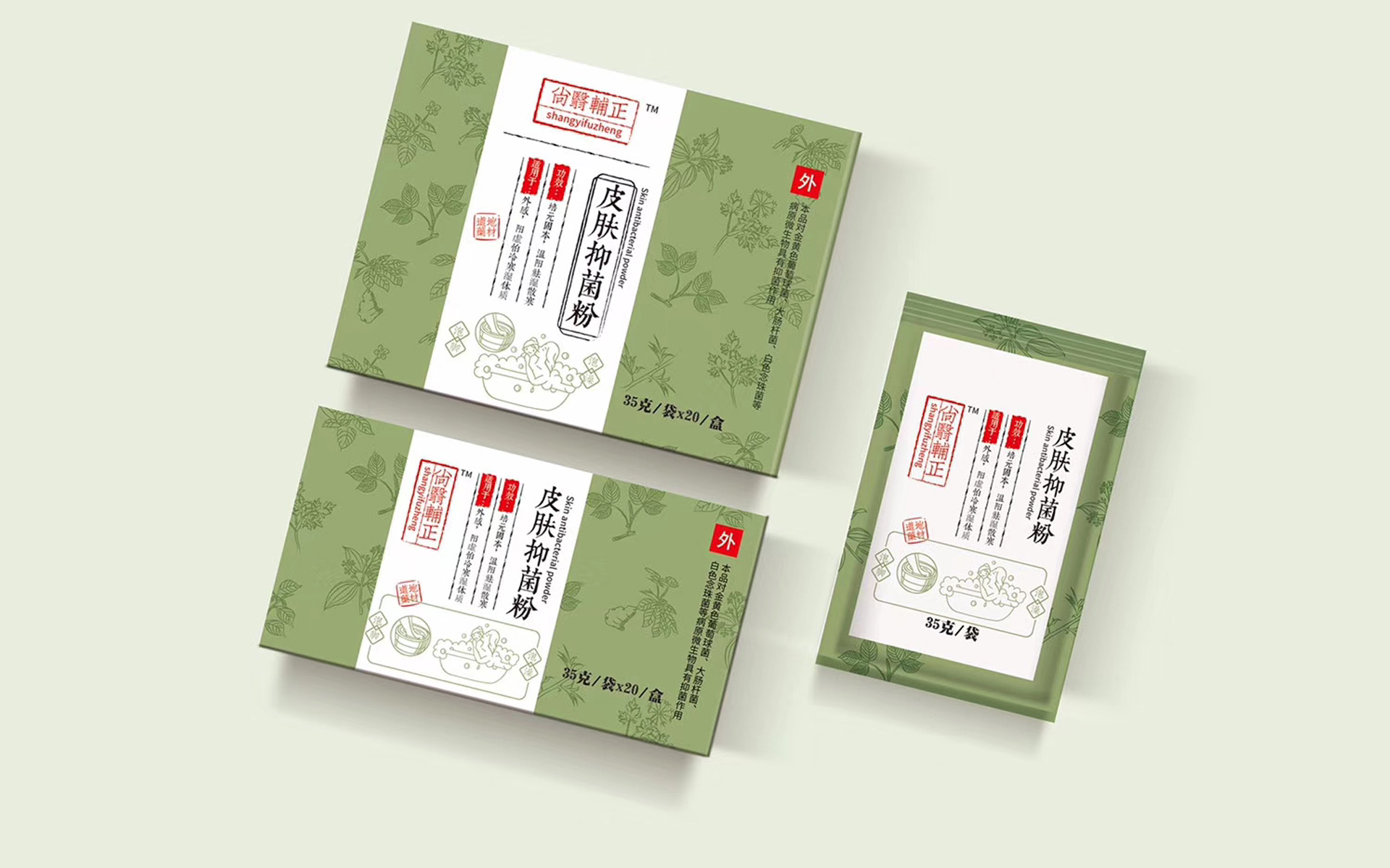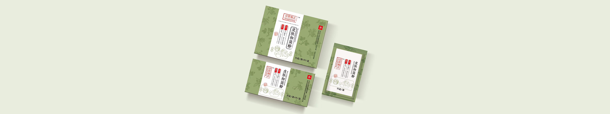 尚翳辅正皮肤抑菌粉包装设计。